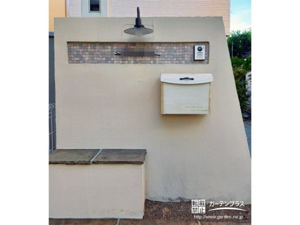 門柱:再塗装 + モザイクタイル貼 アートモザイク スクエア25角