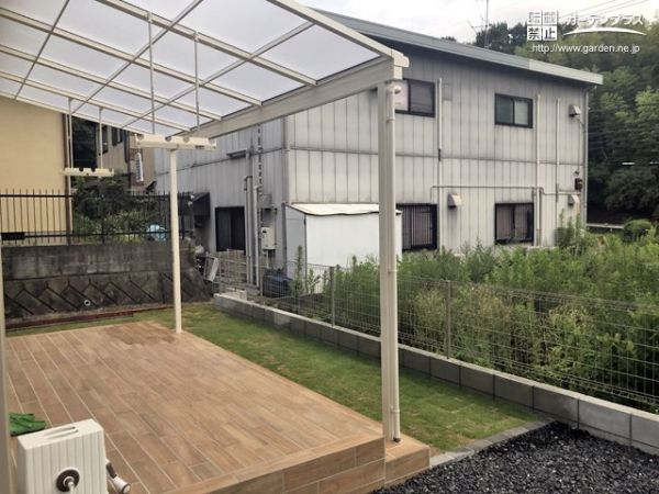 テラス屋根:LIXIL スピーネF型 関東間 ホワイト + 吊下げ式物干しAタイプ + LIXIL 汎用型材 角材(アルミ)