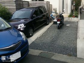 駐車場土間との段差もなくなり、自転車やバイクの移動もしやすくなりました。枕木はコンクリート製ですので、木の質感を再現しながら耐久性に優れています。