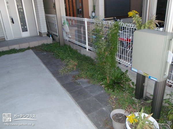 隣地境界部分の雑草を取り除き、コンクリート舗装しました。コンクリート舗装することにより、雑草のお悩みも解消されました。