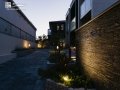 共同住宅の外構工事を承りました。入口アプローチにクォーツサイト特有の色合いとダイナミックな色柄の門柱と自然石の乱形石貼りを敷設し、上質なファザードに仕上がりました。