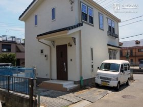今回は新築外構の一式工事を承りました。駐車スペースは方形石を用いて温かい感じに仕上げました。写真奥に見えるフェンスはご自宅の外観とあうように、白色を採用。植栽は常緑樹のものと落葉樹の2本植えていますので、季節を感じつつ、一年を通して緑が感じられます。お子様やご家族が出入りしやすいよう手すりも設置しました。全体的に自然を感じられる素敵な外観になりました。