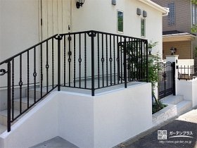 ロートアイアンの重厚感を再現したアプローチの階段の手すり