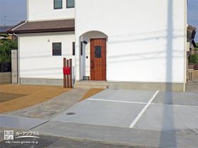 駐車スペース: 土間コンクリート + 白玉砂利目地