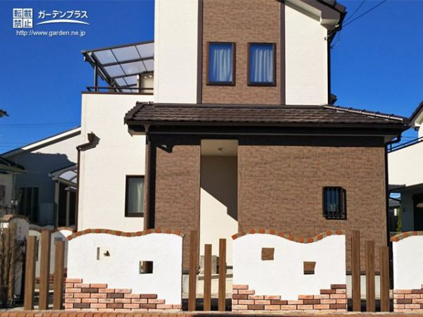 外周ブロック塀: コンクリートブロック + ジョリパット + ブリックタイル