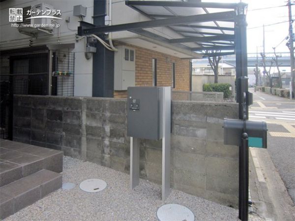 お住いの外観と色合いと合わせた自然石洗出し塗装のアプローチに、水洗いでお掃除も簡単な美しいタイルの玄関ポーチと、シンプルな土間コンクリートの駐車スペースを設置。ガス灯の門灯にブラックアイアンでオシャレにデザインされた機能門柱と園庭門扉を建物の両サイドに設置しました。エレガントモダンな上品なセミクローズ外構です。