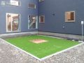 駐車スペースの脇の前庭部分を縁石で仕切り、人工芝を敷設しました。下地として防草シートも敷いているため、雑草も抑制し、ローメンテナンスで明るい緑のお庭を楽しんでいただけます。芝高長めのタイプの芝なら、ふかふかの踏み心地に。お子様の遊び場スペースにおすすめです。