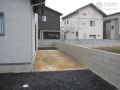 新築のお住まいの外構工事をご依頼いただきました。駐車スぺースやアプローチ脇の道路に隣接する犬走り、裏庭も土間コンクリートを打設。主庭には人工芝、裏側の犬走りは防草シートと砂利を敷いています。お庭全体が舗装されているため、草むしりに悩まされることもなくお庭を隅々まで利用しやすい設計です。またアプローチにはピンク系の乱形石、白いカーポートや目隠しフェンスなど彩りをプラスして、お住まいに似合う可愛らしい外構に仕上げました。