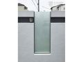 アプローチに印象的なガラスパネルとラインを施した新築外構