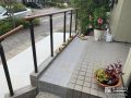 アプローチ階段:化粧ブロック + 踏面 洗い出し仕上げ + 蹴上 タイル