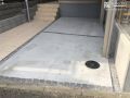 駐車スペースに透水性コンクリートのドライテックを打ちたいとご相談をいただきました。特殊なバインダーで骨材となる石と石をつなぎとめているため、鉄筋が不要なほか、透水性が高い、ヘアクラックが入りにくいといったメリットが多い新しいコンクリート素材です。アプローチには華やかな乱形石を貼り、明るく水はけのよいファサードにリフォームとなりました。