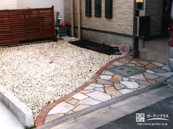 色合いの美しい自然石でアプローチを舗装しましたので、歩行性も良くなり、玄関周りが華やかになりました。
