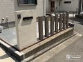 角地のお住まいで、駐車スペースやアプローチは施工されていましたが、お庭側に人が入らないようにしたいとご希望をいただきました。目隠しフェンスではブロック塀では圧迫感があるため、テラスまわりはメッシュフェンスを設置。新設したブロック門柱の裏側は土間コンクリートを打設して駐輪スペースにしました。道路境界にはコンクリート製擬木を設け、こちらもナチュラルな見た目ながら侵入防止に役立ちます。