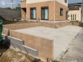 駐車スペースの施工を承りました。高低差のある敷地のため、駐車スペースの周りは土留めの化粧ブロックを積み、土間コンクリートを打設して出し入れしやすい駐車スペースに。階段や機能門柱などは、お客様にて施工されました。