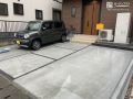 駐車スペースとアプローチを舗装したいとご依頼をいただきました。既に土間コンクリートを打設されていましたが、一度解体し、アプローチまで再度土間コンクリートで舗装。お車が乗り上げるため、コンクリートには厚みもしっかり持たせました。その上からインターロッキングでコンクリート平板を敷設して仕上げています。お庭の端には物置を設置される予定とのことで、土間コンクリートを打設して基礎を作っています。モダンなお住まいの足元を飾る、オシャレなアプローチリフォームです。