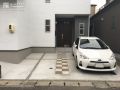 新築外構一式工事を承りました。敷地を有効活用して、玄関前のスペースにアプローチと駐車スペースを併設。アプローチ部分はインターロッキングを使い、個性の光るデザインにしています。デザインにモダン要素を取り入れた、開放的なオープン外構にしました。