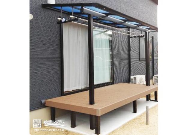テラス屋根:YKK AP ソラリアF型+吊り下げ式物干し