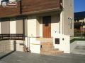 新築外構一式工事を承りました。アプローチには天然石の石畳のような味わいのインターロッキングを使用。木目デザインの機能門柱をアクセントに、落ち着きある門まわりに仕上げました。