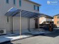 カーポート:LIXIL フーゴR シャイングレー + 熱線吸収ポリカーボネート屋根 + 着脱式サポート柱