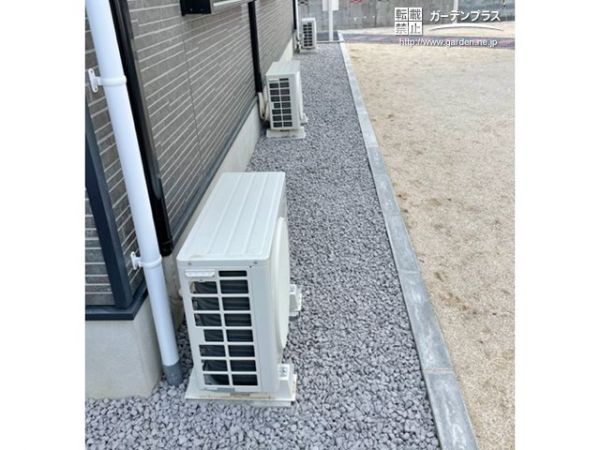 建物まわりに雑草対策工事を行いました。まずは、建物を囲む土の表面を鋤取り、防草シートと砂利を敷設。雑草のが生えるのをしっかりと抑え、草むしりの手間が軽減されるようになりました。さらに、土や砂が風で舞い、窓が汚れてしまうとお困りでしたが、砂利により汚れる心配がなくなっています。