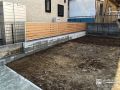 新築のお住まいの外構工事をご依頼いただきました。駐車スペースとして広々と使えるように主庭部分まで土間コンクリートを打設しました。道路境界にはブラックの目隠しフェンスを設けて、お車の出入りが周囲の迷惑にならないよう配慮しました。