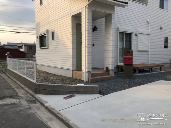 新築のお住まいの外構工事をご依頼いただきました。広い敷地でしたが、予算内に収められるよう、コンクリート打設面を少なくしたり、コストパフォーマンスに優れたメッシュフェンスを採用したりと工夫させていただきました。予算内に収まり、暮らしやすい外構となってお客様にもお喜びいただけました。