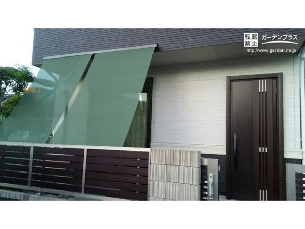 玄関ドアの取り換えと、お庭にシェードを設置する工事を承りました。玄関ドアはフェンスや門扉に合わせた木調カラーのドアへ。テラスには、優しい透け感のあるナチュラルグリーンのシェードを設置しました。フェンスを使って固定でき、日よけのほか、目隠しとしてもお使いいただけます。