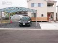 清々しいブルーの屋根とアール屋根が優しく包み込むカーポート設置工事