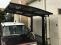 テラス屋根:LIXIL フーゴF 独立テラスタイプ シャイングレー + 水平式物干し