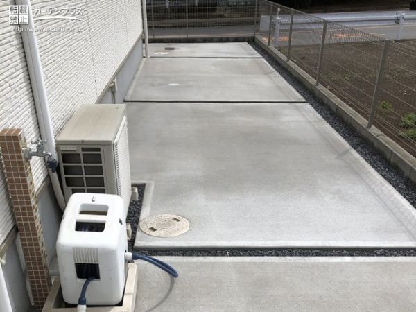 雑草にお悩みの犬走りに土間コンクリートを打設しました。土が無いので雑草が根付く心配もなくローメンテナンス。掃き掃除もしやすく、お庭の清潔感を保てます。